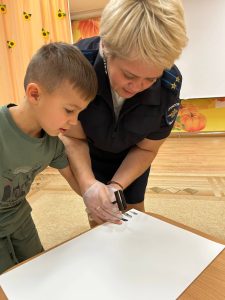 В нашем саду в преддверие праздника “День сотрудников внутренних дел Российской Федерации” прошла встреча с сотрудником СУ УМВД России по городу Барнаулу подполковником юстиции Скворцовой Ксенией Владимировной. Ксения Владимировна рассказала ребятам о правилах безопасного поведения на улице, дома и в детском саду.
