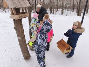 Мы с ребятами группы “Гномики” решили сходить в парк “Лесная сказка” и повесить кормушки для птиц, которые ребята сделали совместно с родителями. Подойдя к делу с особой заботой и ответственностью.
